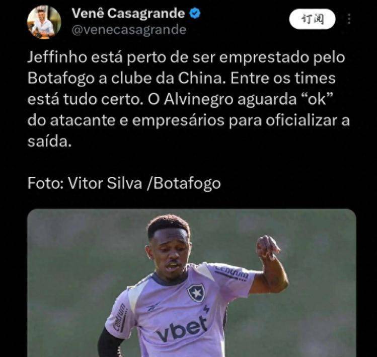超冬季转会窗口2026年的中,西的转会引爆被一桩来自巴。·卡萨格兰德的独家报道按照巴西威望记者维内,认将以租借地势加盟一支中超球队26岁的巴西边锋热菲尼奥已确,层面已全面杀青划一这笔来往正在俱笑部,最终确认只待球员。