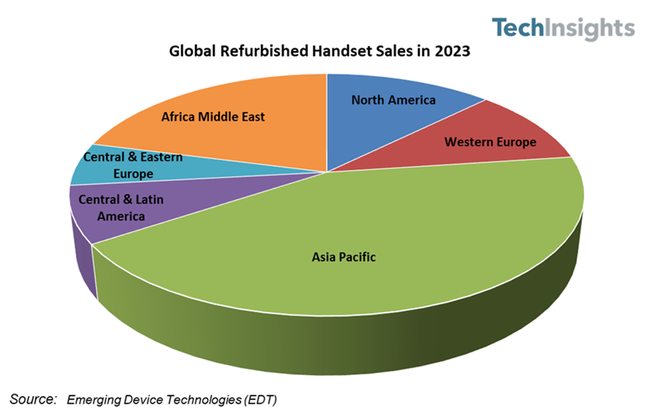 ights 估计TechIns,手机出货量将同比低落 7.6%尽量 2023 年亚太区域翻新,区比拟仍将是最强劲的但其总出货量与其他地。23 年到 20,出货量将位居第二北美翻新手机的, 10.4%年增加率为。机较少导致中欧和东欧成为最疲软的两大市集经济压力、俄乌冲突以及消费者交出的翻新,-22%年降幅为。3 年202,的翻新手机销量也将展示负增加非洲、中东、拉丁美洲和西欧。